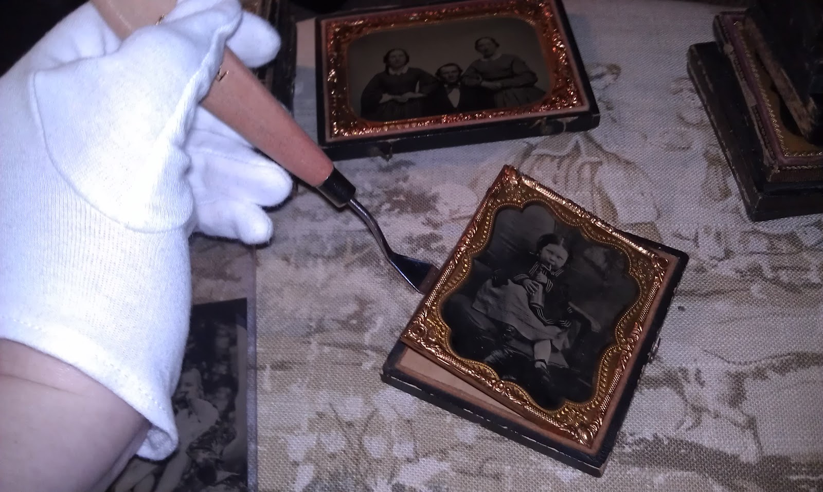 Once in awhile, I do get lucky and find a name. Sometimes when you open these old and delicate time capsules you might just find something buried inside. This photo shows you some of the old photos in my collection. Its a mixture of daguerreotypes, tintypes, and ambrotypes. Once in awhile I will pull them apart and see if there is something behind them and this time I found something.....